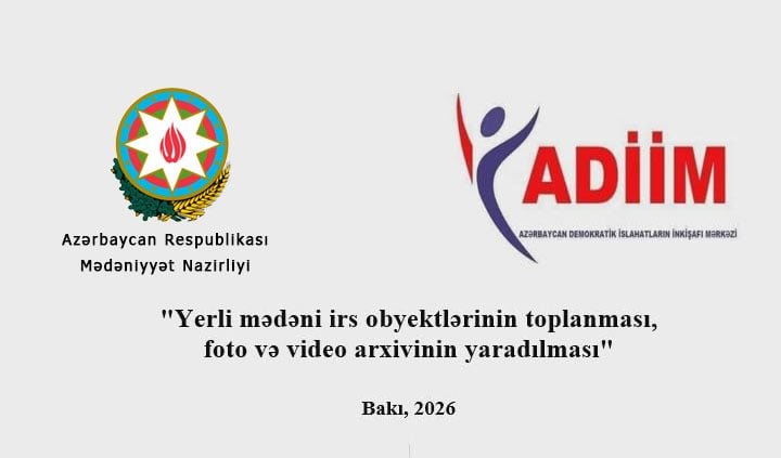 Azərbaycan Demokratik İslahatların İnkişafı Mərkəzi (ADİİM) İctimai Birliyi Azərbaycan Respublikası Mədəniyyət Nazirliyinin maliyyə dəstəyi ilə "Yerli mədəni irs obyektlərinin toplanması, foto və video arxivinin yaradılması" layihəsinə start verib.