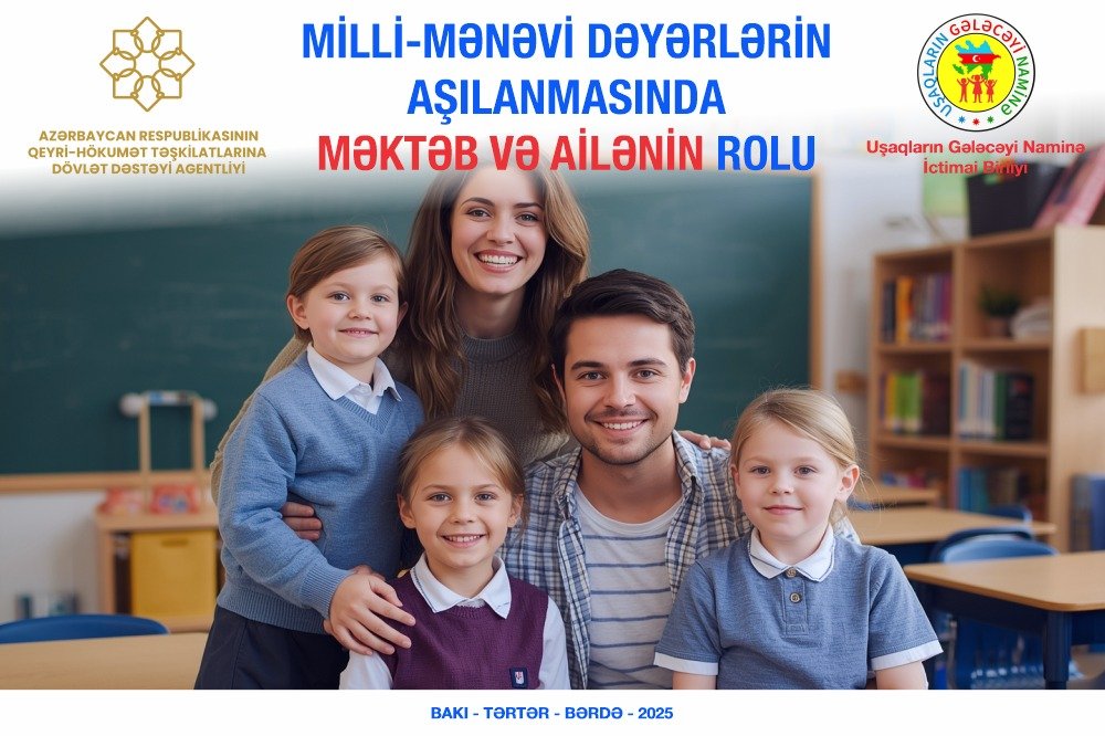 “Uşaqların Gələcəyi Naminə” İctimai Birliyi Azərbaycan Respublikasının QHT-lərə Dövlət Dəstəyi Agentliyinin maliyyə dəstəyi ilə "Mili-mənəvi dəyərlərin aşılanmasında məktəb və ailənin rolu" adlı layihəsinin icrasına başlayıb.