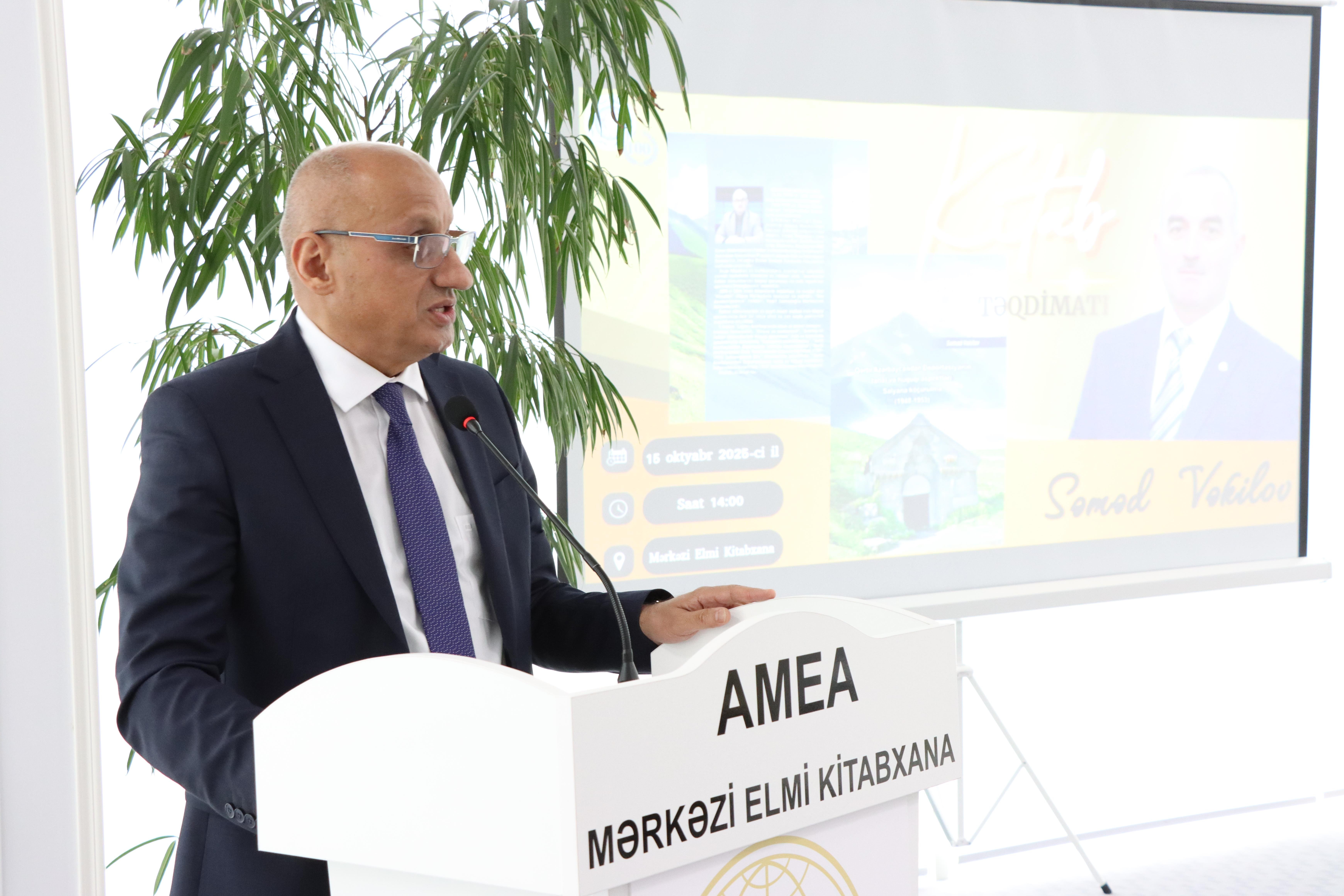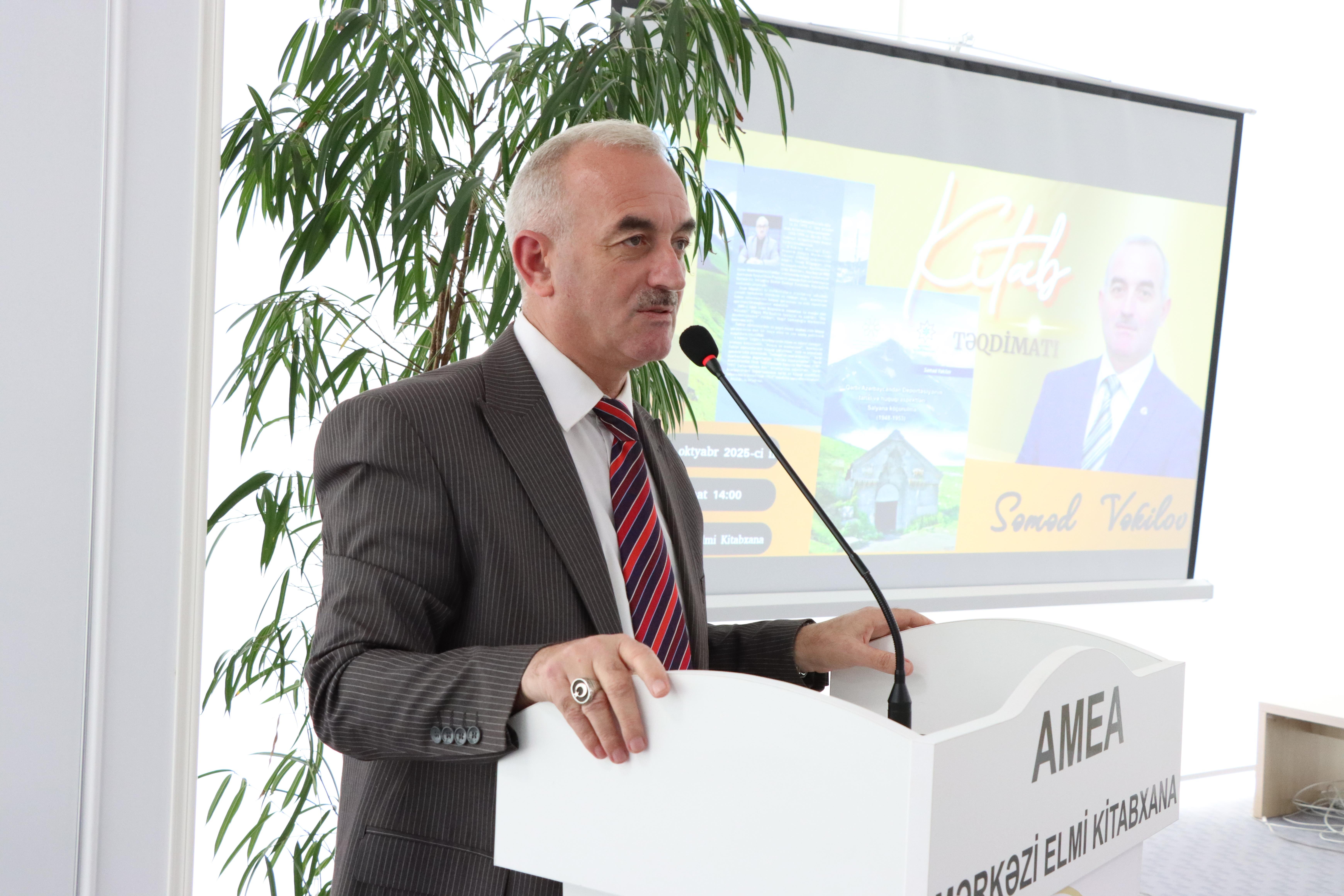 Oktyabrın 15-də AMEA-nın Mərkəzi Elmi Kitabxanasında (Akademiklər zalı) Azərbaycan Respublikasının Qeyri-Hökumət Təşkilatlarına Dövlət Dəstəyi Agentliyinin maliyyə yardımı ilə “Müvəkkil Hüquq Mərkəzi” İctimai Birliyi tərəfindən icra olunan “Qərbi azərbaycanlıların yurd həsrəti: Salyana deportasiya” layihəsinin yekun tədbiri keçirilib. Tədbir çərçivəsində tədqiqatçı-hüquqşünas Səməd Vəkilovun “Qərbi Azərbaycandan Deportasiyanın tarixi və hüquqi aspektləri: Salyana köçürülmə (1948–1953)” kitabının təqdimatı olub.![]()