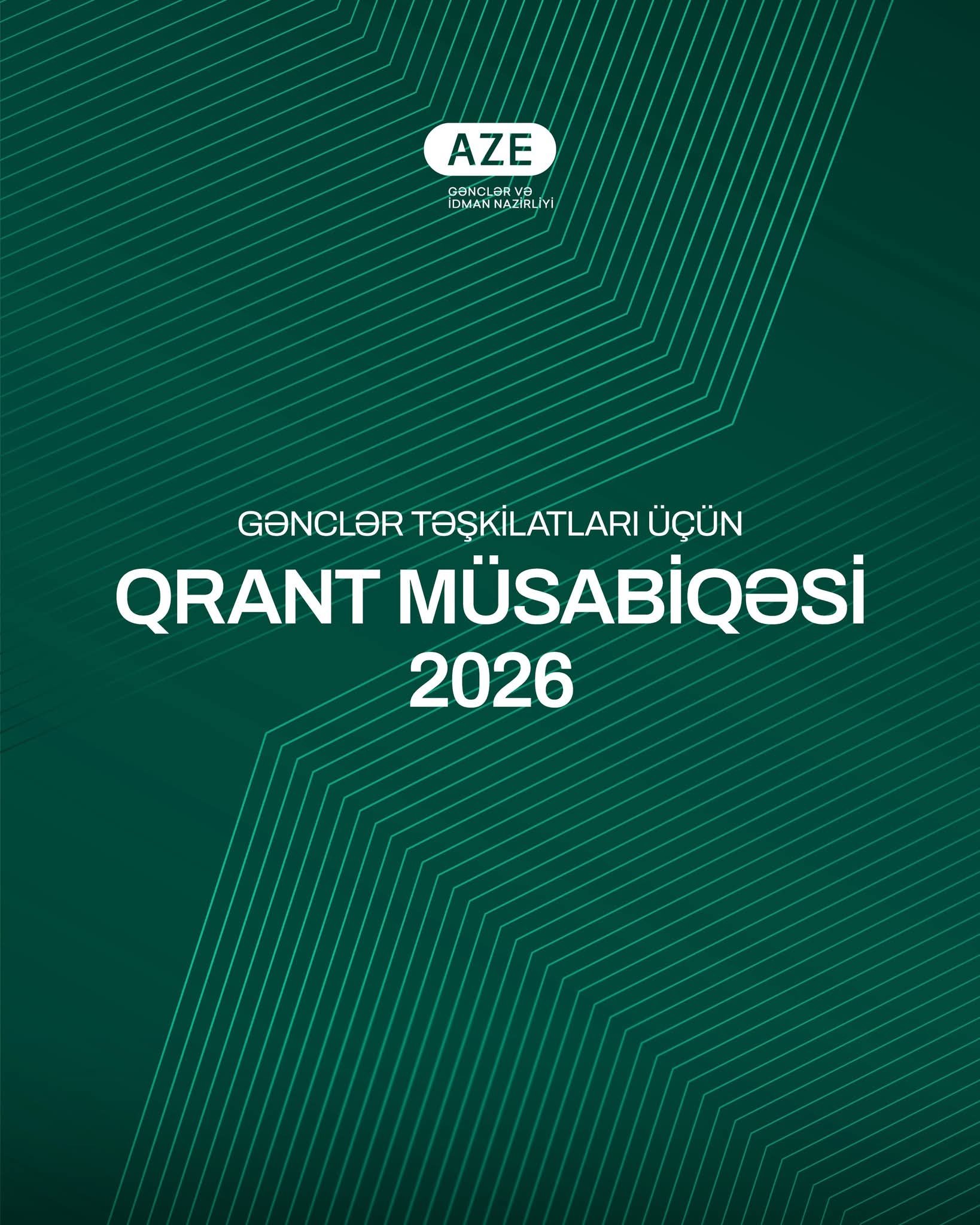 Azərbaycan Respublikasının Gənclər və İdman Nazirliyi tərəfindən gənclər sahəsində fəaliyyət göstərən qeyri-hökumət təşkilatlarının (gənclər təşkilatları) təşəbbüslərinin dəstəklənməsi məqsədilə 2026-cı il üzrə qrant müsabiqəsini elan edir.