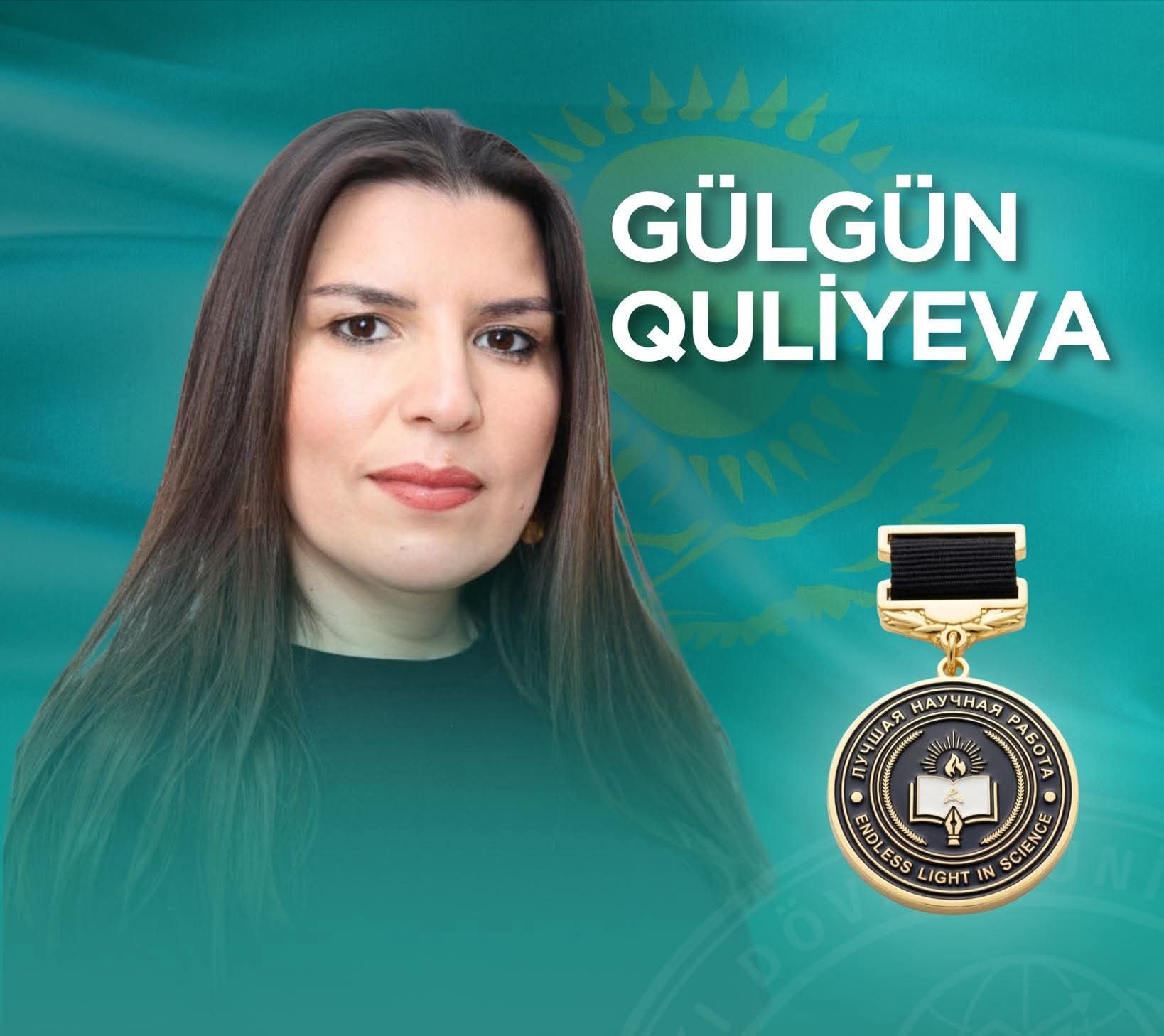 Universitetdən verilən məlumata görə, Qazaxıstanın Astana şəhərində “Endless Light in Science” elmi mərkəzi tərəfindən təşkil olunan beynəlxalq elmi-tədqiqat müsabiqəsində Gülgün Quliyevanın elmi işi yüksək qiymətləndirilərək “Ən yaxşı elmi iş” nominasiyası üzrə I dərəcəli mükafata layiq görülüb.